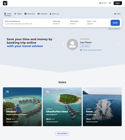 Tur acentelerine, turizm hizmetlerinin online rezervasyonu ve uzaktan destek sunma imkânı olan ücretsiz bir B2C web sitesi sağlıyoruz